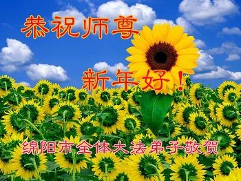 绵阳市全体大法弟子感恩师尊救度之恩!在新的一年里,我们会更加精進的修炼自己,救度我们这一方的众生,完成我们史前的誓约,跟着师父回家。 四川省绵阳市一学法组全体大法弟子恭祝师尊新年好!