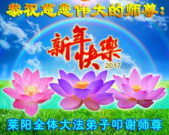 山东省烟台市莱阳市全体大法弟子恭祝慈悲伟大的师尊新年快乐!