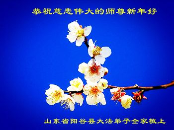 山东省聊城市阳谷县大法弟子全家恭祝慈悲伟大的师尊新年好!