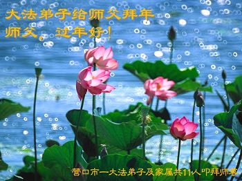 过年了,师父好!师父辛苦了!我知道师父就在身边,时刻看护着我们,走好的每一步,都是师父为我们铺好了路。我知道还有很多的人心没有修去,让师父操心了。我只有多学法、学好法,尽力做好三件事,让师父多一些欣慰。谢谢师父!弟子敬上! 辽宁省营口一大法弟子及家属共11人恭祝师父过年好!