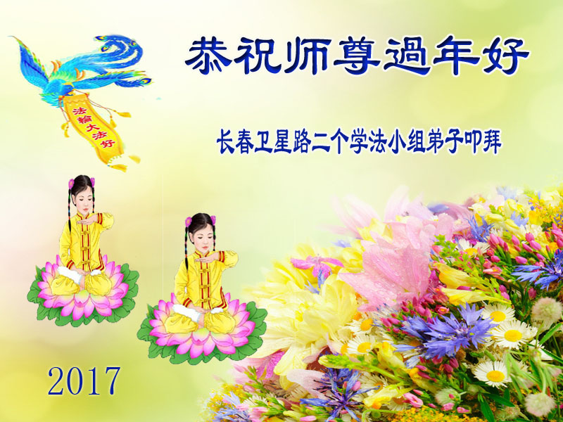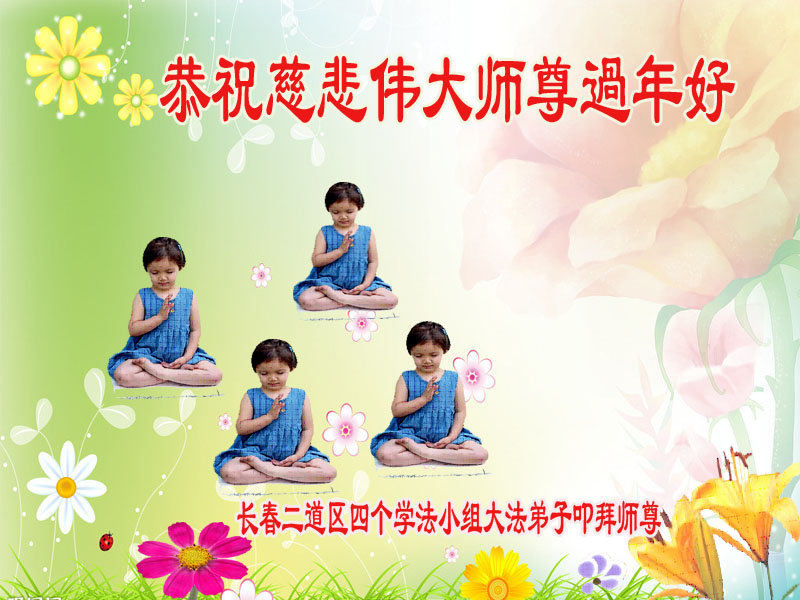 我们四个学法小组大法弟子表示:一定抓紧时间,做到扎扎实实学法,脚踏实地去修,认认真真的讲,争分夺秒救度。四个学法小组大法弟子遥拜师尊! 吉林省长春卫星路二个学法小组大法弟子恭祝师父过年好!