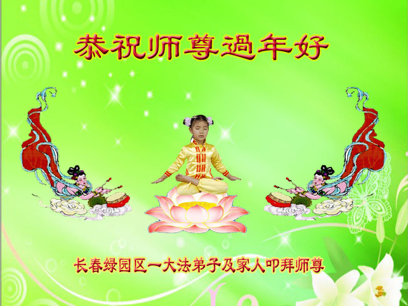 我们一定要好好学法炼功,提高心性,修好自己,做好三件事,请师尊放心。弟子叩拜! 吉林省长春市绿园区一大法弟子及全家人恭祝慈悲伟大的师尊过年好!