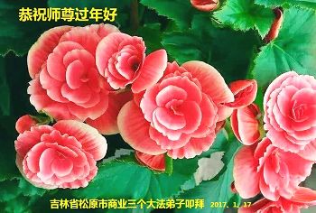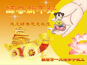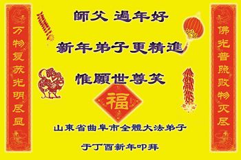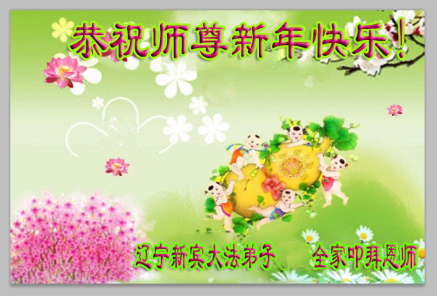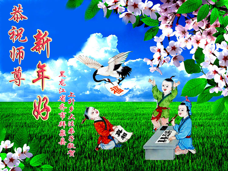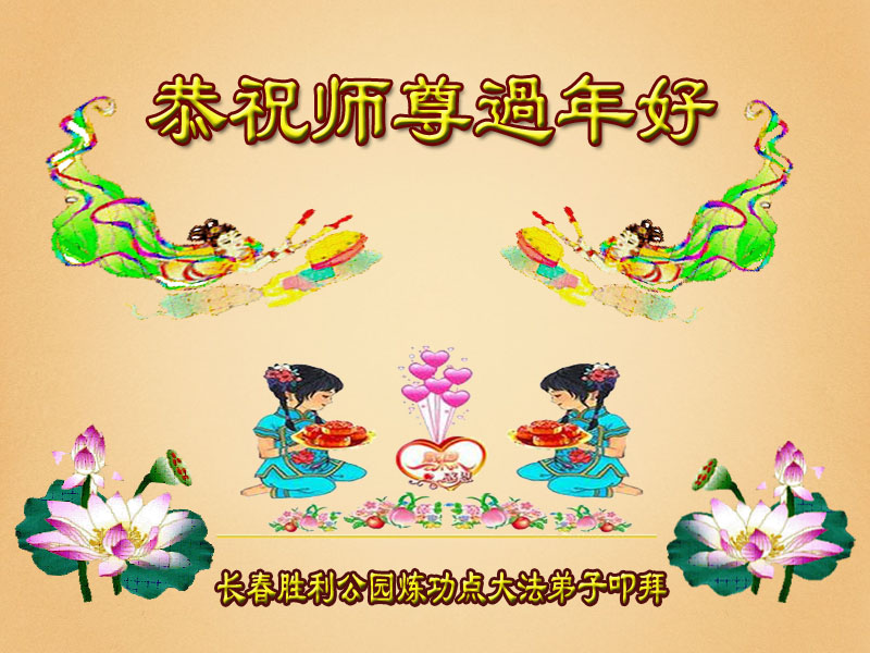 师父过年好!在以后的助师正法中,精進实修,努力做好三件事,请师父放心。东辛庄地区全体大法弟子叩拜师尊! 吉林省四平市公主岭市全体大法弟子恭祝慈悲伟大的师尊新年快乐!