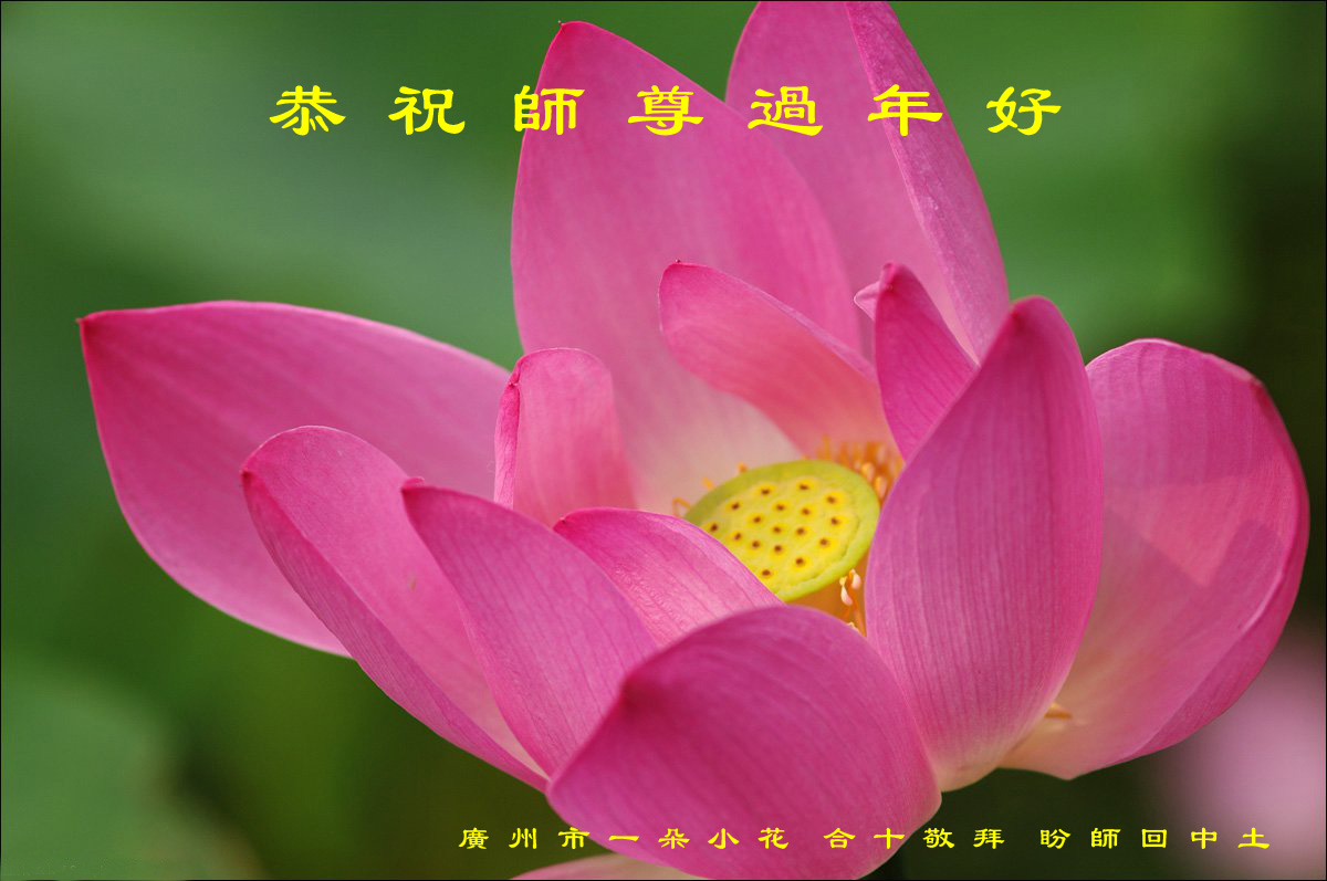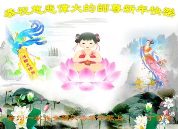 在新的一年里,我们要多学法、学好法,修好自己,做好三件事,走稳、走正、走好修炼的路,多救人完成使命,让师父多一份开心。虽然师父在美国,我们在大陆,但每天给师父敬香、敬水、敬水果时,感觉师父时刻都在我们身边保护、呵护。每当遇到困难时,只要求师父帮助,马上就得到解决。我们怀着无比感恩的心给师父叩头拜年!师父新年好!弟子们给您叩头拜年了! 广东省广州一资料点大法弟子恭祝师尊过年好!