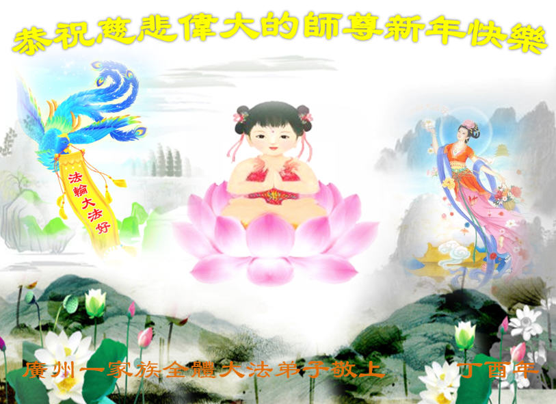 广东省广州一家族大法弟子恭祝慈悲伟大的师尊新年快乐!