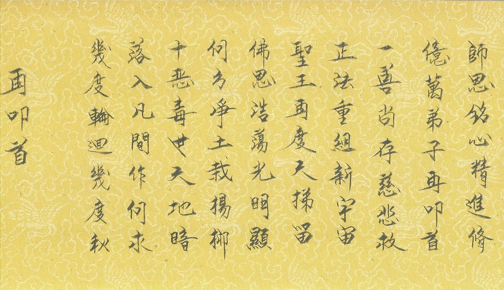 再叩首! 借此二零一七年,感怀师尊苦度之隆恩,师尊您辛苦了!广州大法弟子,恭祝师尊新春佳节快乐!谨作《再叩首》,以共勉添正念,并表达对师无限之崇高敬意。 几度轮回几度秋, 落入凡间作何求? 十恶毒世天地暗, 何方净土栽杨柳? 佛恩浩荡光明显, 圣王再度天梯留。 正法重组新宇宙, 一善尚存慈悲救。 亿万弟子再叩首, 师恩铭心精進修。 广东省广州市越秀区一学法小组大法弟子恭祝慈悲伟大的师尊新年快乐!