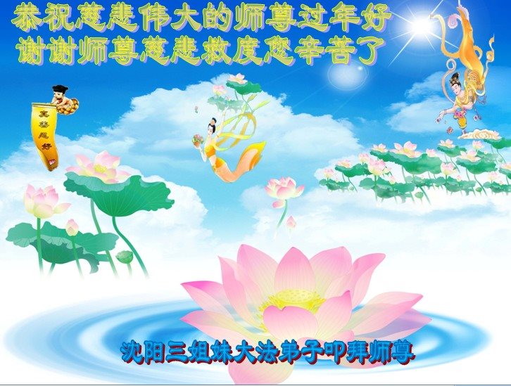 辽宁省沈阳三姐妹大法弟子恭祝慈悲伟大的师尊过年好!
