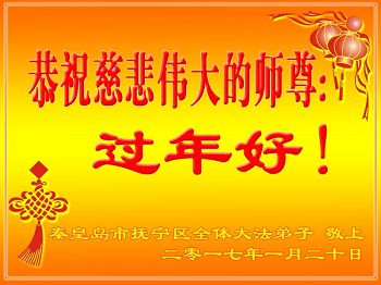 【明慧网二零一七年一月二十五日】 河北省秦皇岛大法弟子恭祝师父新年好!师父辛苦了!谢谢师父!