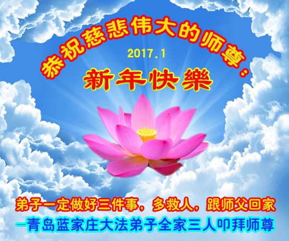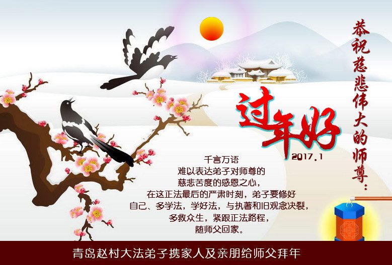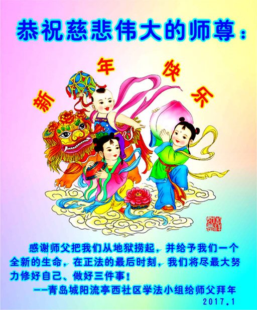 【明慧网二零一七年一月二十五日】 山东青岛大法弟子全家恭祝师尊过年好!