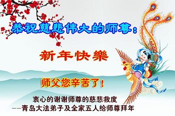 山东省青岛大法弟子全家五人恭祝师尊新年快乐!