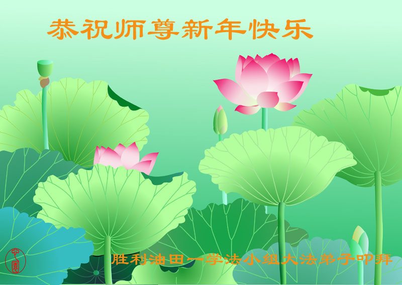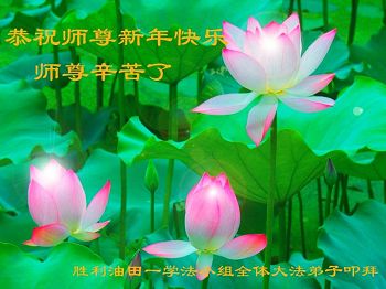师尊辛苦了!师尊为众生承受太多了。随师正法走到今天,师尊一直慈悲的呵护着我们,真是太幸运了。可是最近有些懈怠,真对不起师尊。今后一定努力,做好三件事,严格要求自己,找回修炼如初的状态。 胜利油田一学法小组大法弟子恭祝师尊新年快乐!