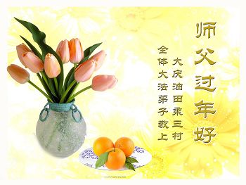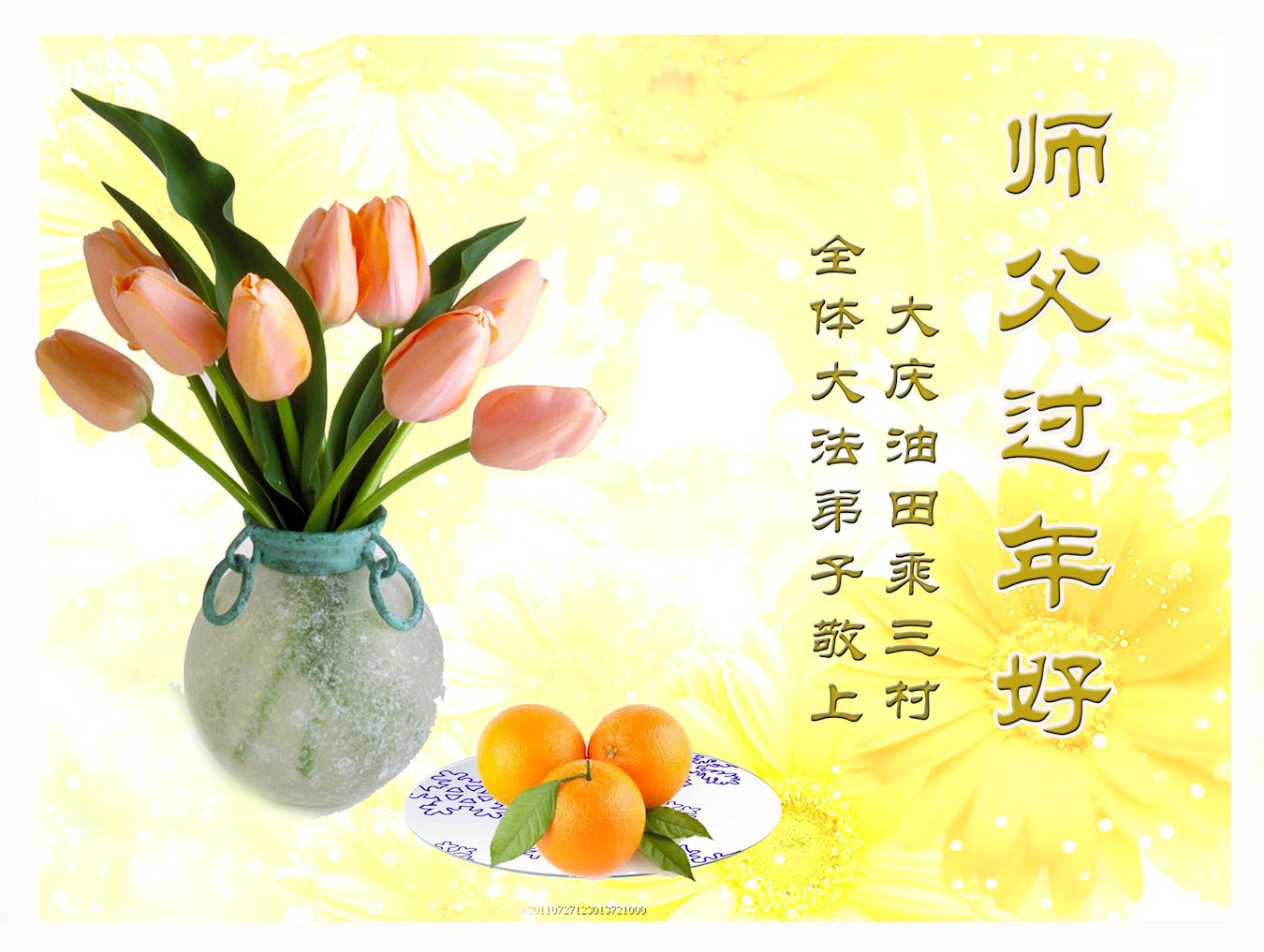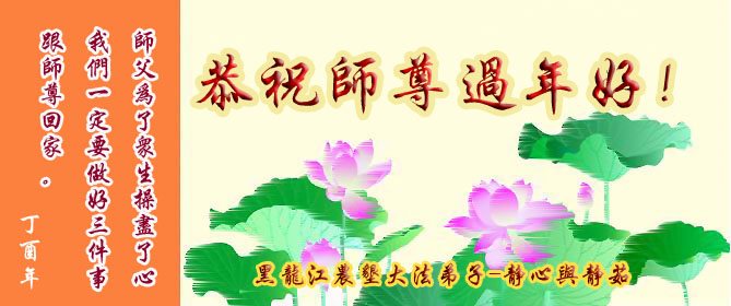 在新的一年里,我们相互促進,比学比修,珍惜师尊用巨大承受延续来的时间,做好三件事,助师正法多救人。 黑龙江大庆油田乘三村全体大法弟子敬祝师父过年好!
