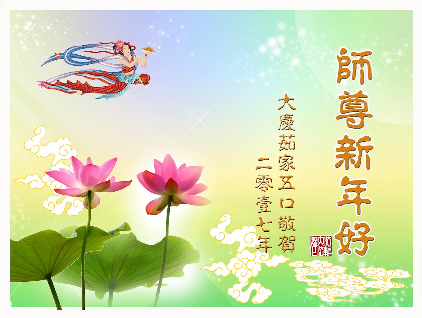 师父:您好! 在中国传统新年到来之际,弟子在此给您拜年,师父您辛苦了!弟子祝您新年快乐!您为了众生的得救耗尽了一切,弟子无以言表您的洪恩浩荡,只有做好三件事,才能不辜负您的慈悲苦度。 佳木斯市医疗卫生系统大法弟子敬上 二零一七年一月二十日 山东胜利油田一学法小组全体大法弟子恭祝师尊新年快乐!