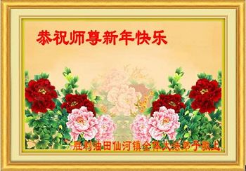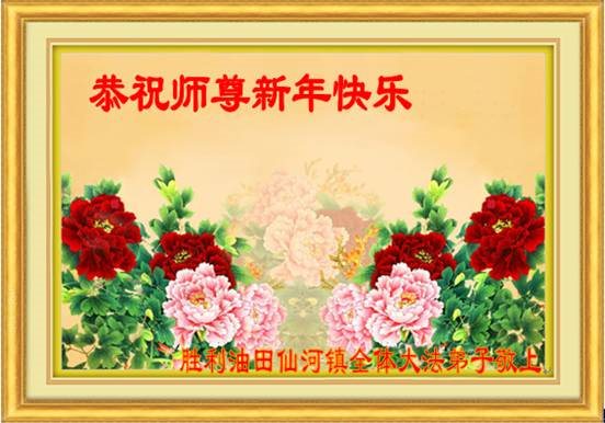 慈悲伟大的师尊:您好! 中国传统的新春佳节丁酉新年就要到了。在新年到来之际,恭祝师尊新年快乐!家乡的弟子们想念师尊。 在所剩不多的正法时间里,弟子们一定谨遵师尊的教诲,学好法,努力做好“三件事”,救度更多的众生,跟随师尊回归真正的家园。 长春市汽车厂区一学法小组弟子跪拜叩首 2017年1月18日 胜利油田仙河镇全体大法弟子恭祝师尊新年快乐!