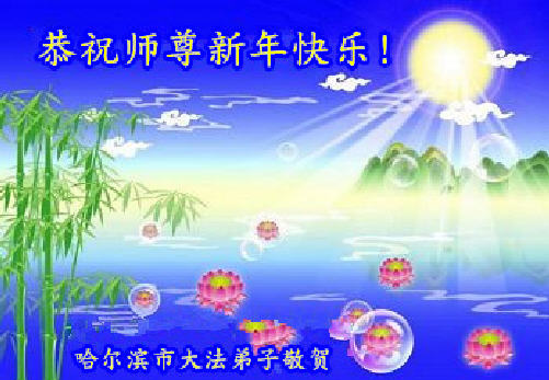 【明慧网二零一七年一月二十五日】 黑龙江省哈尔滨一学法小组恭祝师尊新年快乐!