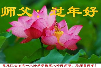 黑龙江省哈尔滨市平房区大法弟子一家人祝师父过年好!