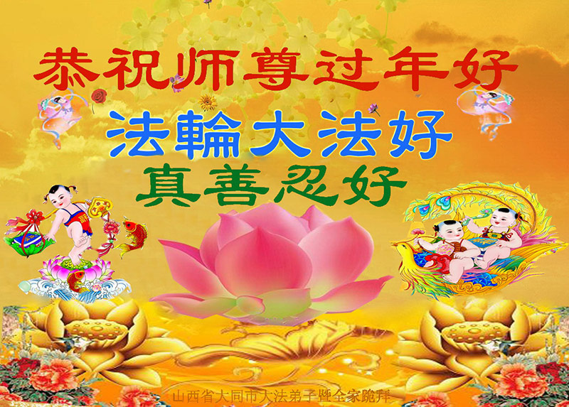 师父辛苦了!我们姐妹俩还没修炼,但我们相信大法好!师父好!我们支持奶奶学法炼功多救人。 山西省大同市大法弟子暨全家叩首跪拜师尊!恭祝师尊过年好!