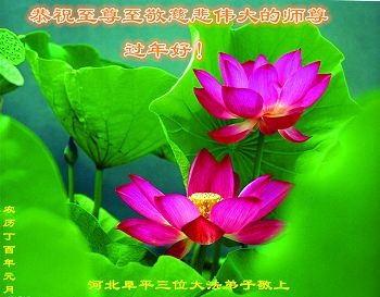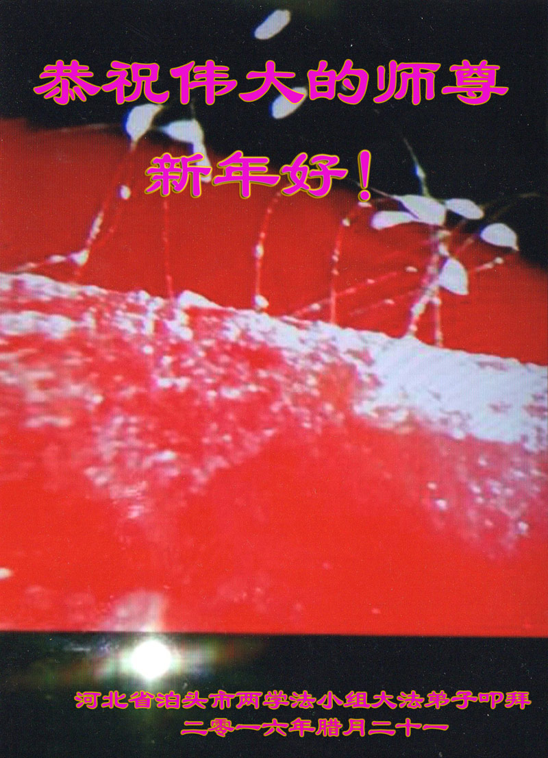 师尊新年好!在新年到来之际,弟子感谢伟大的师尊慈悲救度! 河北省邢台县全体大法弟子恭祝师尊过年好!