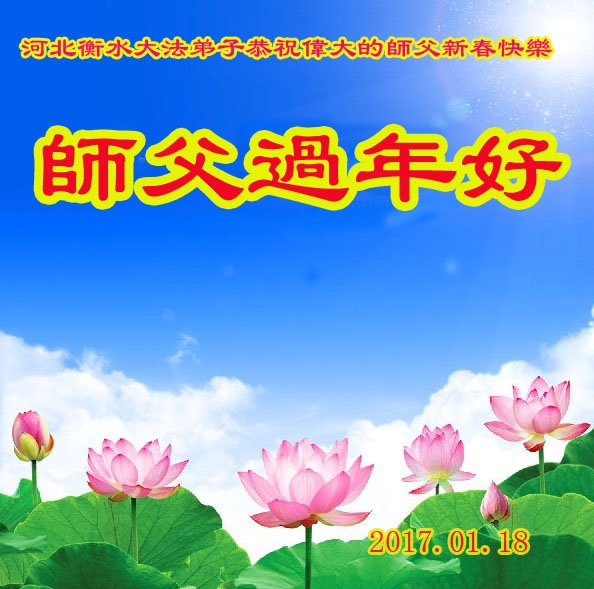 师父辛苦了!师父过年好!正法已到最后的最后,弟子会永远跟随师父,平稳走好最后的路,跟师父回家!感恩师父! 河北衡水大法弟子恭祝慈悲伟大的师父新春快乐!