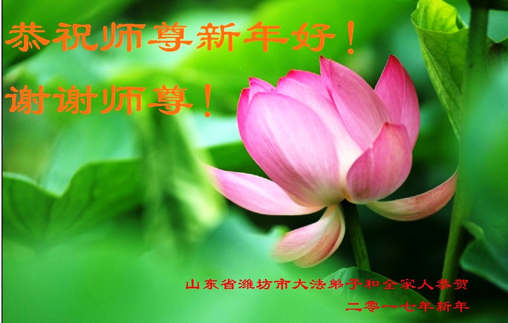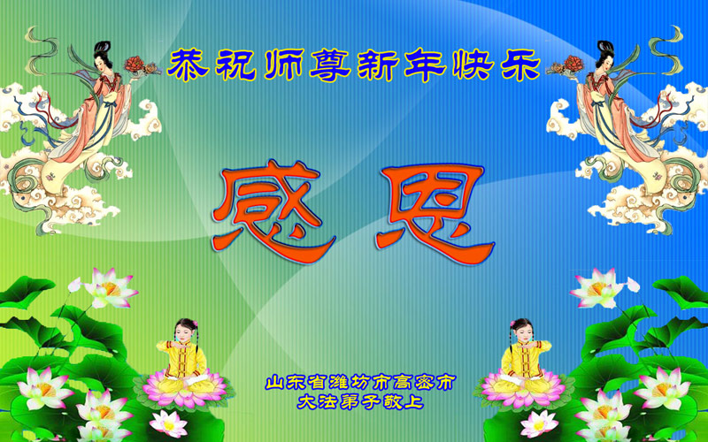 谢谢师尊的慈悲救度之恩!在最后的修炼路上,一定学好法,向内找,修好自己,放下一切人心和观念,做好三件事,让师尊少操心。 山东潍坊大法弟子恭祝慈悲伟大的师尊新年快乐!