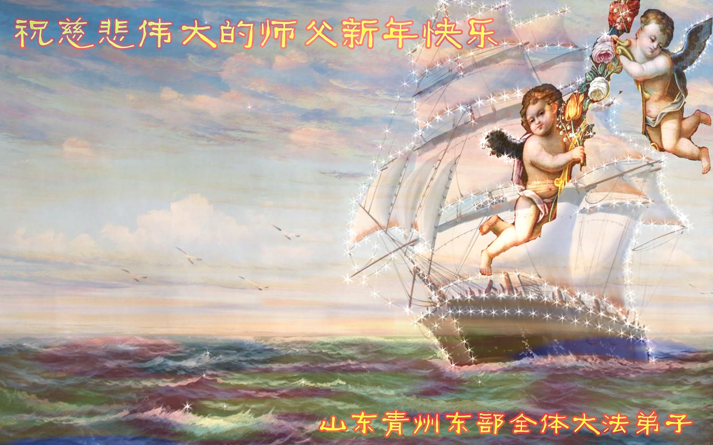 山东潍坊一学法小组大法弟子恭祝慈悲伟大的师尊新年快乐!