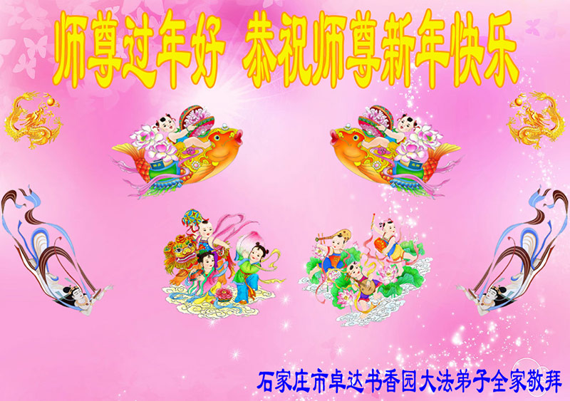 弟子选择下世助师正法,虽然屡遭迫害,但仍一如既往护卫大法,证实大法,为世人得救尽身心之力。再叩恩师! 河北省石家庄大法弟子携全家给师父拜年了!恭祝师尊新年快乐!