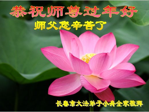 在新的一年里,弟子要牢记师尊的教诲,多学法,学好法,向内找,修好自己,抓紧时间多救人,做好三件事,整体提高,整体升华,正念正行,兑现誓约,跟师尊回家。 感谢师尊的慈悲苦度!弟子向师尊敬拜、合十! 吉林省长春大法弟子全家恭祝慈悲伟大的师尊过年好!师父您辛苦了!