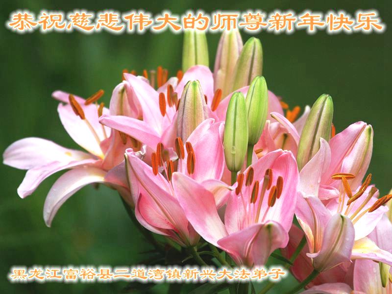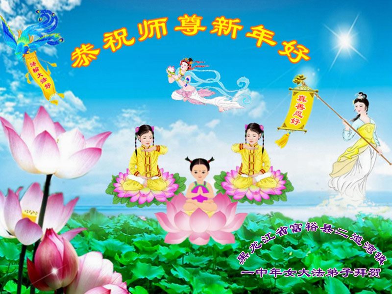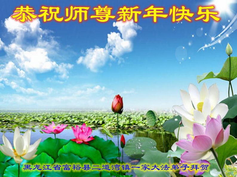 在这万古不遇的机缘中,我们一家大法弟子要更加珍惜师父用洪大的慈悲和巨大的承受为众生开创的这段宝贵的时间,更加珍惜师父安排的这份神圣的法缘。相互提醒,相互鼓励,相互配合,遇事向内找,圆容好整体,扎实稳定的做好三件事,共同跟师父回家! 黑龙江省齐齐哈尔市富裕县二道湾镇大法弟子恭祝师尊新年快乐!