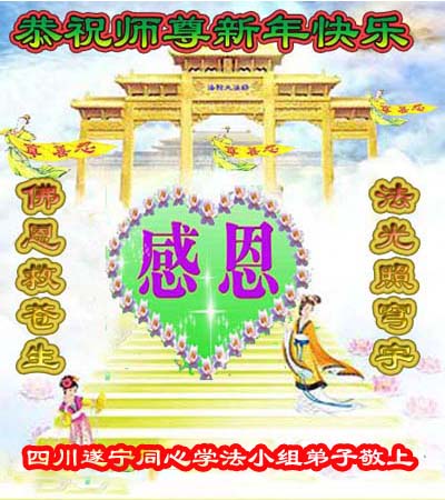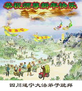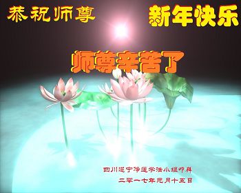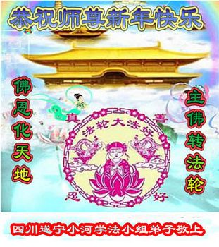 师尊洪恩法无边 救度苍生法轮转 乾坤再造传大法 众生得救穹宇正 法徒精進紧随师 助师开创新世纪 四川遂宁小河学法小组大法弟子恭祝师尊新年快乐!