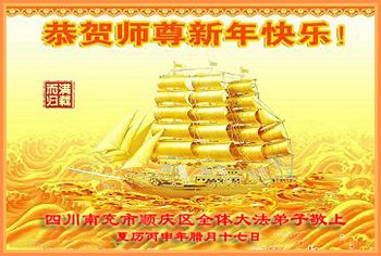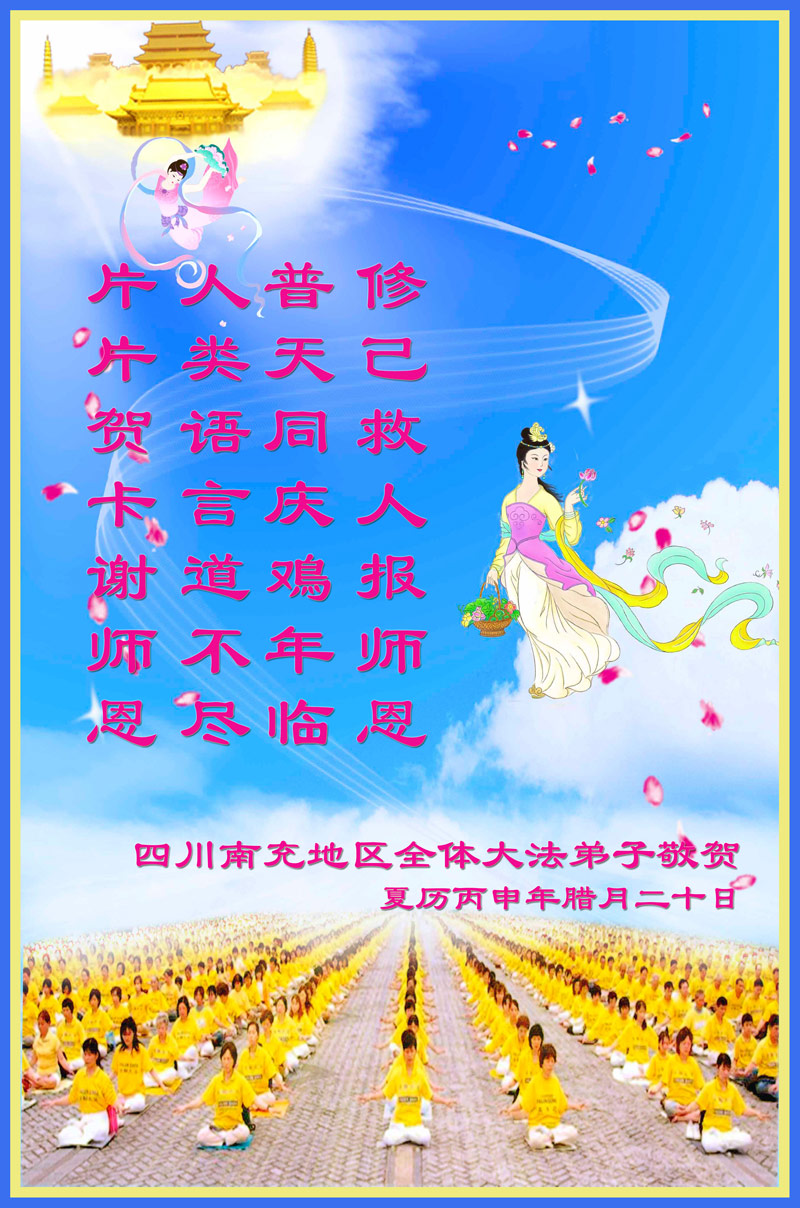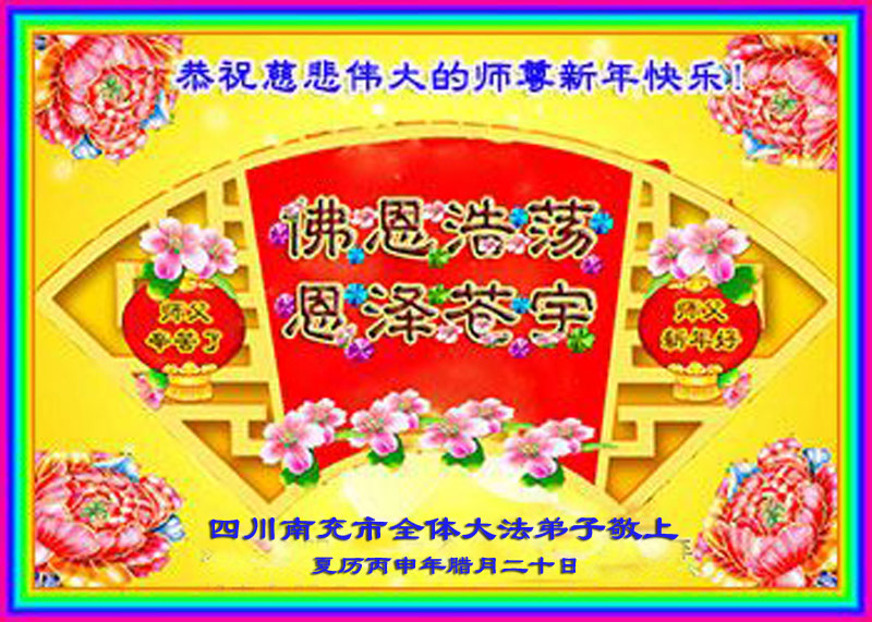 四川南充市全体大法弟子恭祝慈悲伟大的师尊新年快乐!