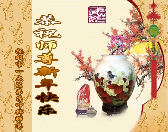 师尊师尊过年好 大法弟子心欢喜 三件事记得牢 精進实修要做到 师恩浩荡没法表 只有法徒心知道 师恩深啊师恩重 永生永世难回报 胸怀众生慈悲洪 承受巨难从不表 只有众生都得救 师尊才会心里笑 辽宁省抚顺一名大法弟子恭祝师尊新年快乐!