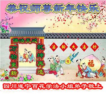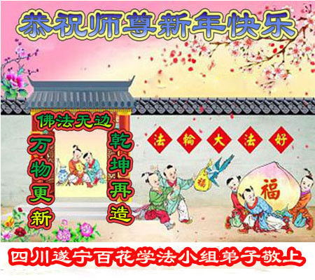 四川遂宁百花学法小组大法弟子恭祝师尊新年快乐!