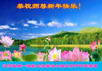 师栽净莲五朵花, 姐妹一组在学法。 助师正法三件事, 内找执着去掉它。 精進、精進、再精進, 报答师恩快快回家。 恭祝师尊新年好! 恭祝师尊新年快乐! 辽宁省抚顺一大法弟子恭祝师尊新年快乐!师尊新年好!