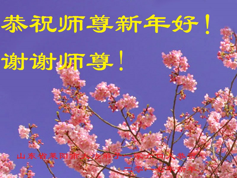 山东省烟台市莱阳市一家五名大法弟子代表全家八口人向慈悲伟大的师父致以崇高的敬意,衷心恭祝慈悲伟大的师尊新年佳节快乐!