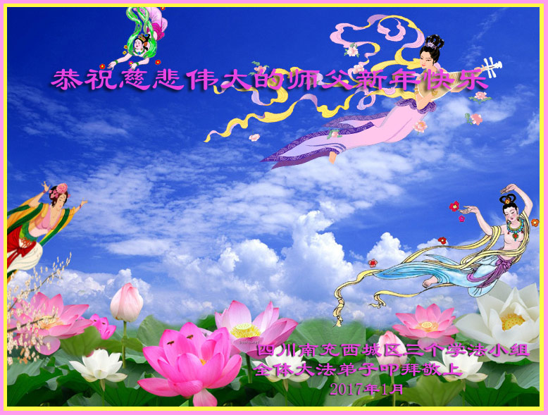 【明慧网二零一七年一月二十五日】 四川南充西城区三个学法小组全体大法弟子恭祝慈悲伟大的师父新年快乐!