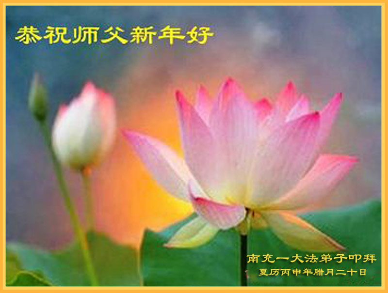 弟子想念您!师父,弟子一定珍惜走过的路,在修炼的路上精進实修,不负使命。 颂师尊 危难转法轮 洪念正乾坤 力挽巨狂澜 挥手掸风尘 立掌除旧恶 大穹从此新 慈悲洒甘露 大法真善忍 众生皆同化 普天颂师恩 四川遂宁市大法弟子清玉向师尊拜年!恭祝慈悲伟大的师尊新年快乐!