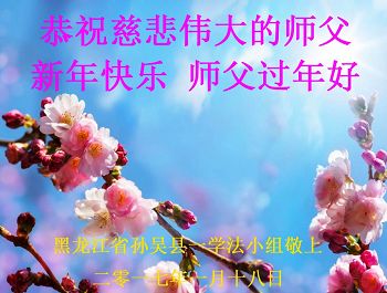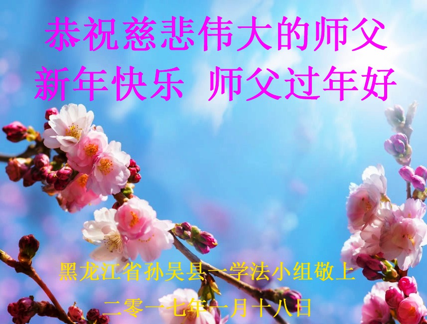 黑龙江省孙吴县姐弟大法弟子一起敬上 二零一七年一月十九日 山东省聊城市临清市一学法小组大法弟子恭祝伟大的师尊新年快乐!