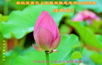 师父您为救苍宇众生辛苦了!弟子们非常想念您! 弟子们在师父慈悲的看护中,又走过了充满荆棘而有惊无险的一年!弟子们无限敬仰和感恩师父!弟子们一定精進实修,讲清真相多救人,让师父多一份欣慰! 最后跪拜师父:恭祝慈悲伟大的师父过年好! 黑龙江省佳木斯市汤原县一大法弟子恭祝师尊新年好!