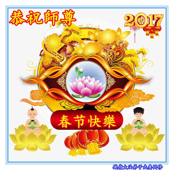 恭祝师尊新年好 滚滚红尘苦苦等 千年轮回迷心性 幸遇师尊传正法 兄妹同心叩洪恩 大陆一家三代大法弟子恭祝慈悲伟大的师尊新年快乐!