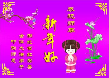 湖北省黄冈市红安县全体大法弟子恭祝师尊新年快乐!