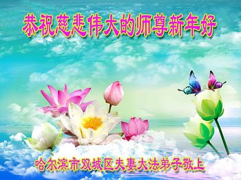 黑龙江省哈尔滨市双城市一夫妻大法弟子恭祝师尊新年好!