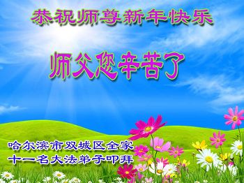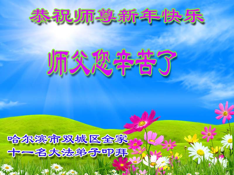 黑龙江哈尔滨市双城区全家十一名大法弟子恭祝师尊新年快乐!
