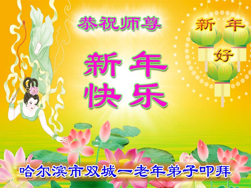 黑龙江哈尔滨市双城一老年大法弟子恭祝师尊新年快乐!