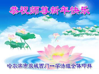 黑龙江哈尔滨市双城西门一学法组全体大法弟子恭祝师尊新年快乐!