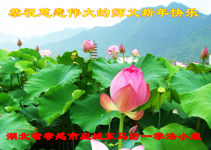 尊敬的师父:您好! 在这中华大地传统新年即将到来的时候,我们四川省阆中市普贤路学法小组弟子怀着对师父深切的思念,深深地祝愿师父新年好!师父您好!师父您辛苦了!祝愿师父新年快乐! 四川省阆中市普贤路学法小组全体大法弟子敬上! 湖北省孝感市应城东马坊一学法小组大法弟子恭祝慈悲伟大的师父新年快乐!
