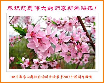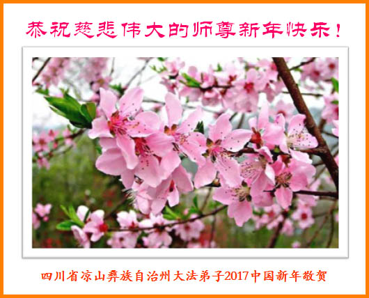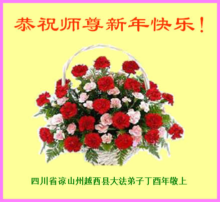 尊敬的师父:您好! 在过去的岁月,为救度世人,您费尽了苦心。师父,您辛苦了!在这新年到来之际,我们四川省阆中市西门学法组全体大法弟子怀着对师尊深深的敬意和思念向师父问好。 师父您好!师父您辛苦了!祝愿师父新年快乐! 四川凉山州大法弟子恭祝师尊新年快乐!