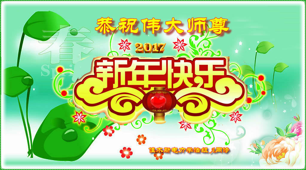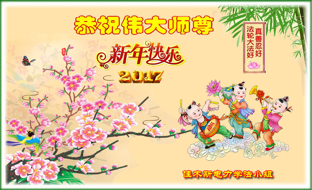 恭祝伟大师尊 新年快乐! 师尊话 记心间 三件事 大如天 神路跑 永向前 师快乐! 过新年 佳木斯电力学法小组 黑龙江省佳木斯电力学法小组恭祝伟大师尊新年快乐!