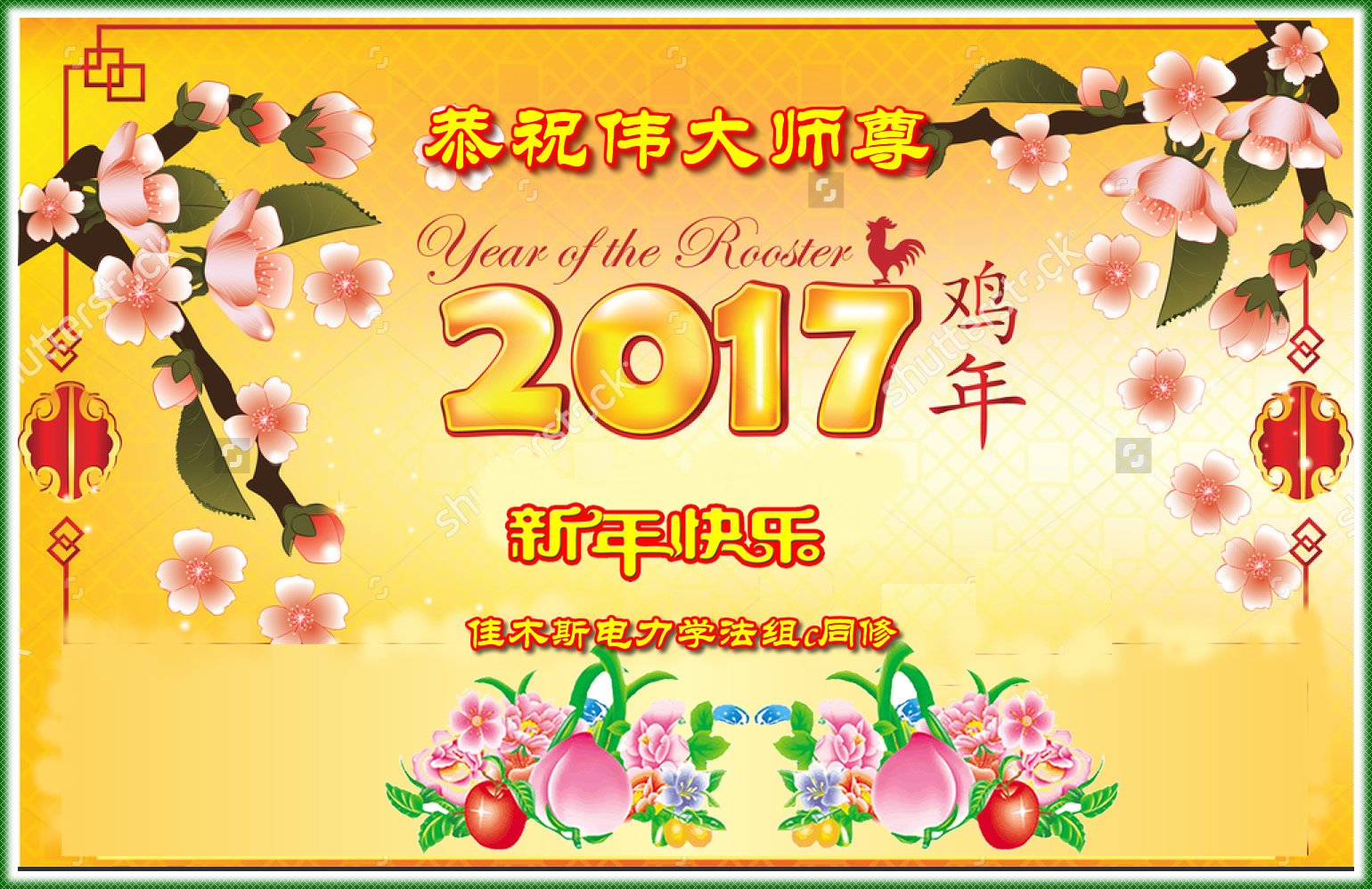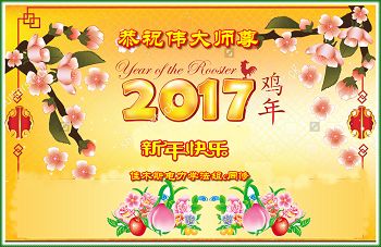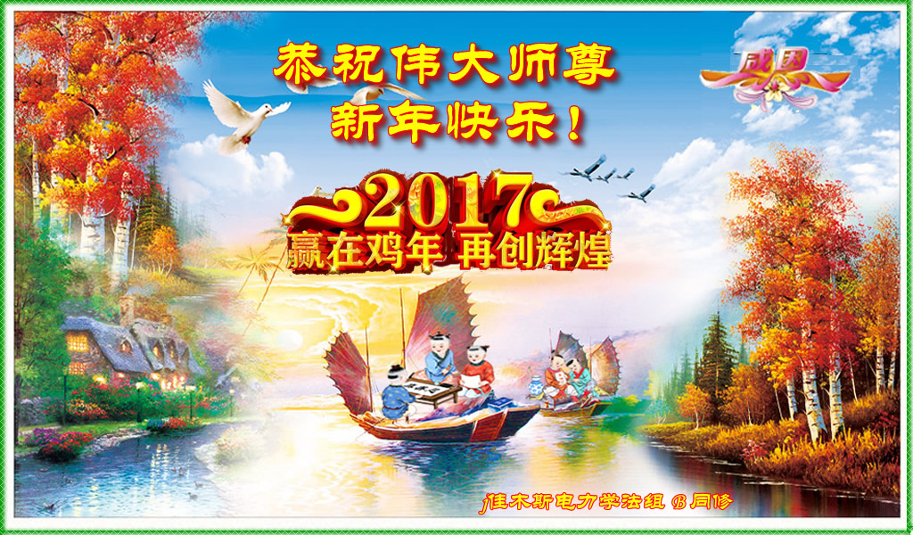 恭祝伟大师尊 新年快乐! 信师信法 精進不停 同化大法 提高悟性 助师正法 救度众生 修好自己 肩负使命 祝师快乐! 伟大英明 佛恩浩荡 天地永恒 佳木斯电力学法小组 北京朝阳区一家庭恭祝师尊新年快乐!