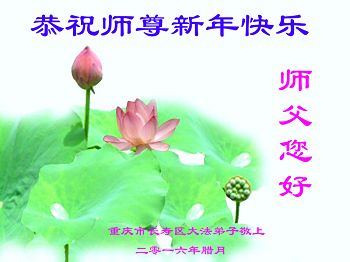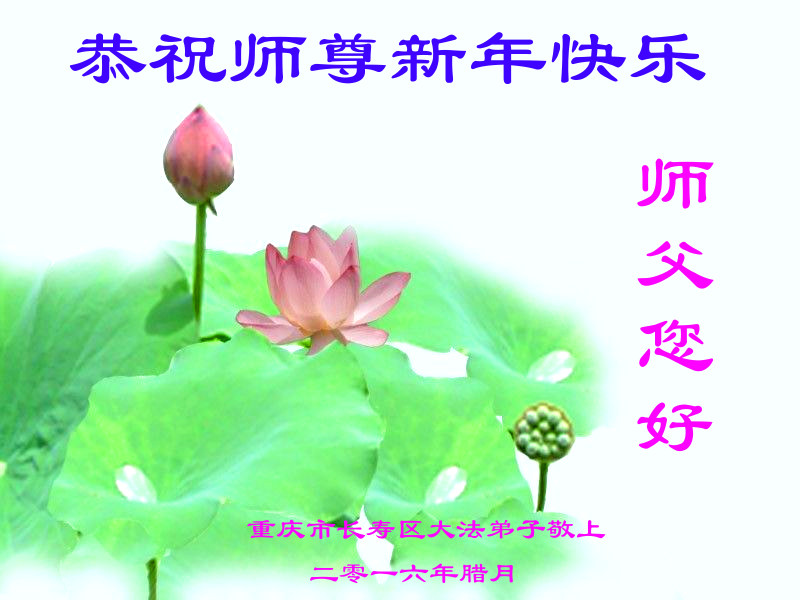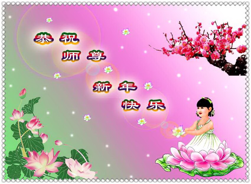 恭祝师父新年快乐! 愿众生得度;愿大陆民众明真相。 坚定正念,正法必成。 四川遂宁市南莲学法组大法弟子恭祝师父新年好!