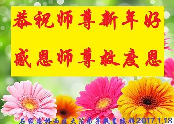 【明慧网二零一七年一月二十五日】 吉林省辽源市大法弟子恭祝慈悲伟大师尊过年好!